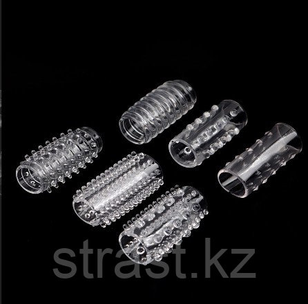 В комплекте 6 шт. Изготовлены из безопасного гипоаллергенного материала. Насадки очень эластичные, подходят для любого размера члена. Мягкие пупырышки, ребрышки, усики доставят новые приятные ощущения.